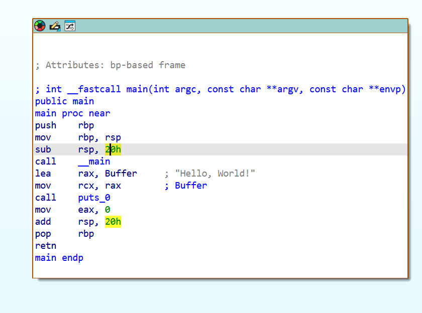 ; 建立新的栈帧:rbp 作为本函数的基址指针