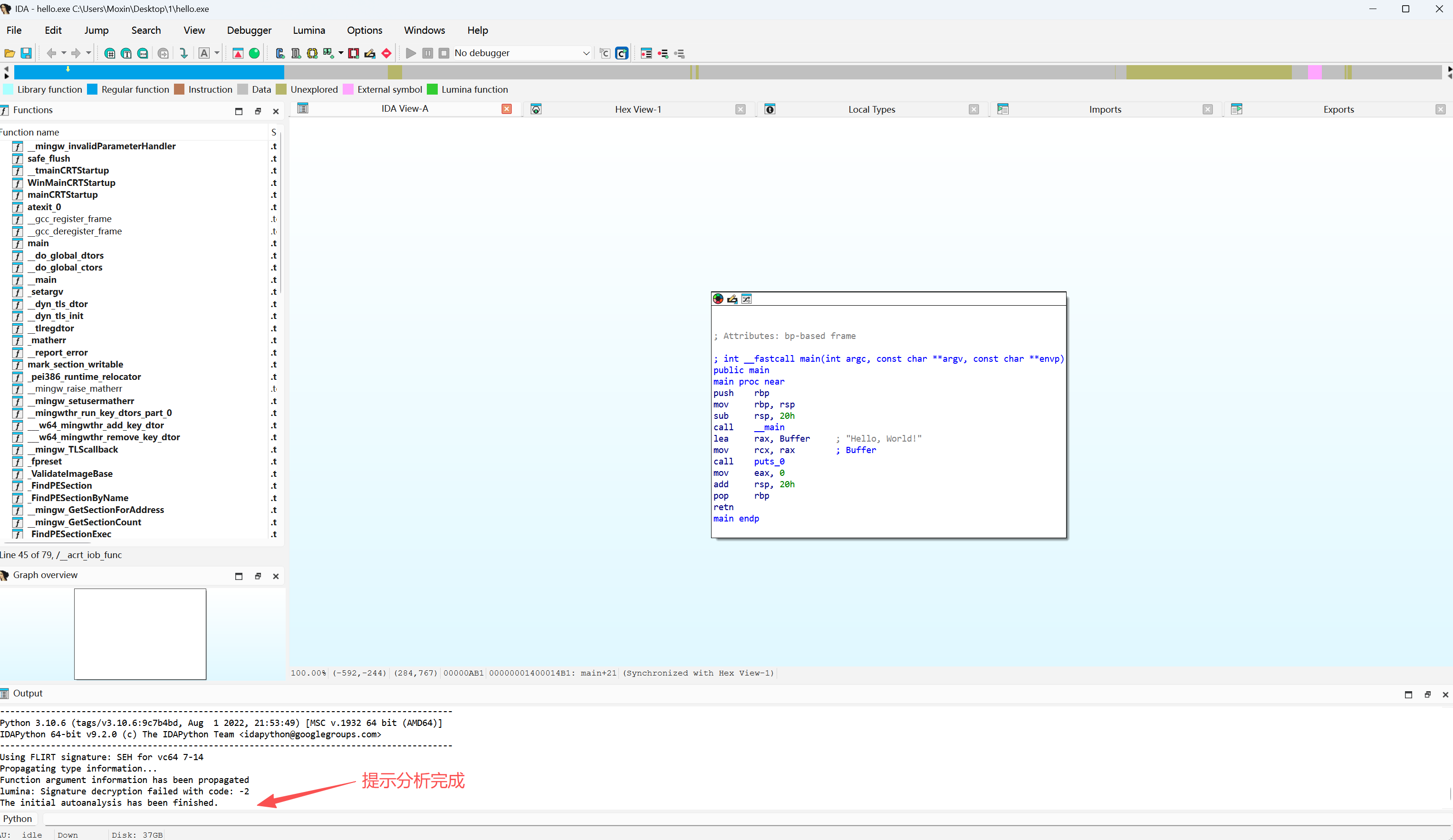 - IDA 开始自动分析(反汇编 + 代码识别)