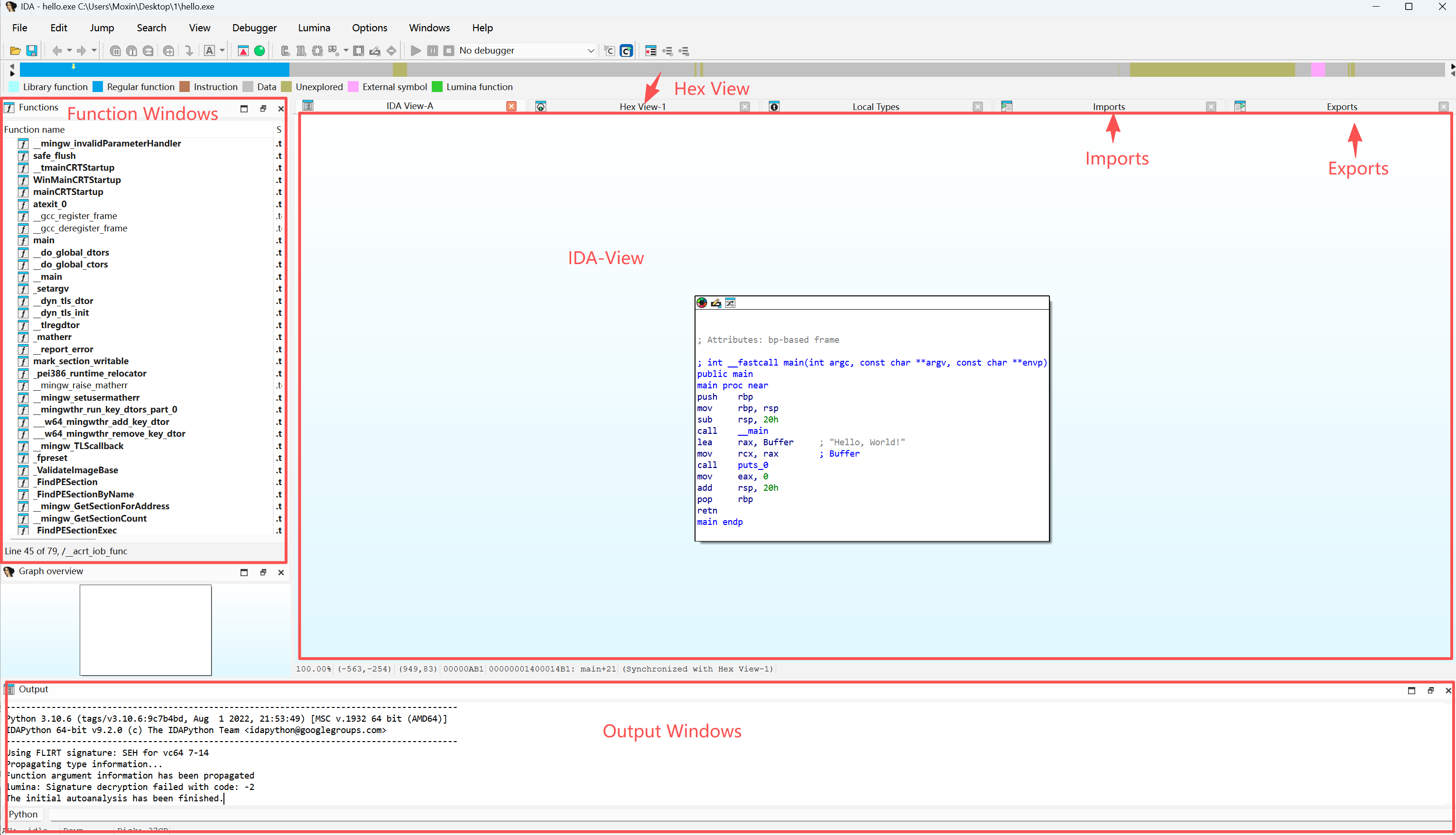 以我们在上一篇文章分析的基础程序为例子,为大家介绍一下IDA的用户视图。