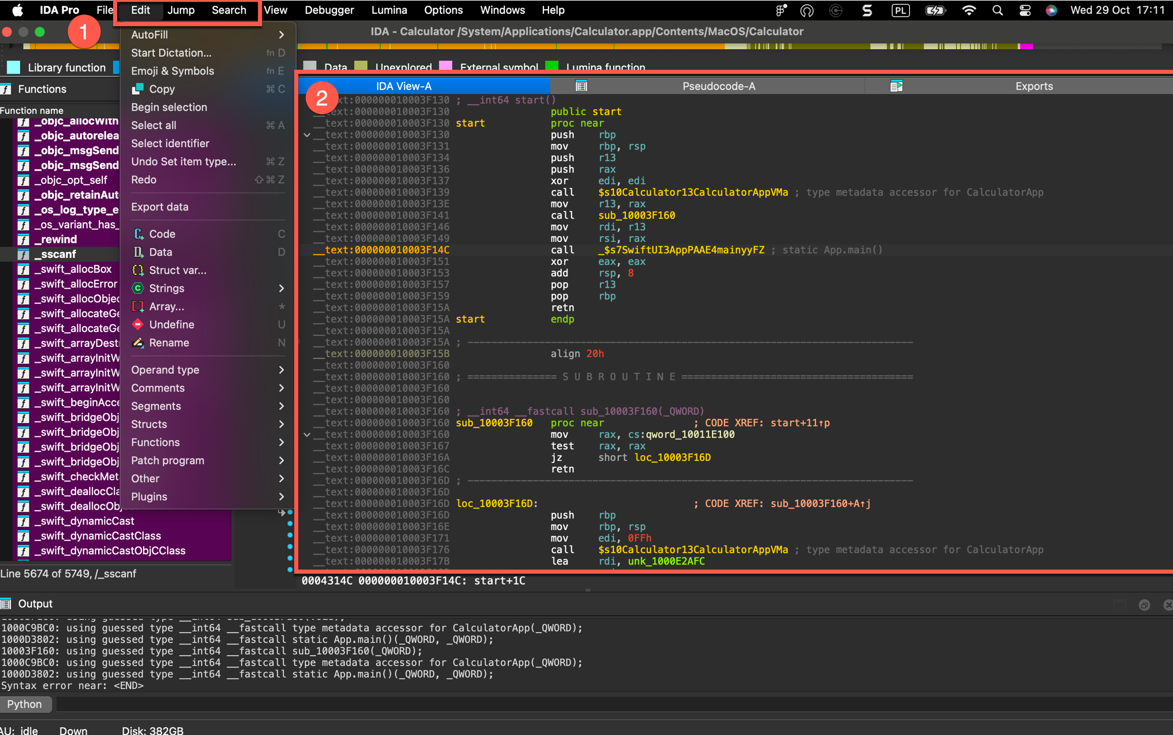 - 编辑- 提供上下文相关的编辑操作,例如修补字节、修改指令、重命名符号和更改数据类型。