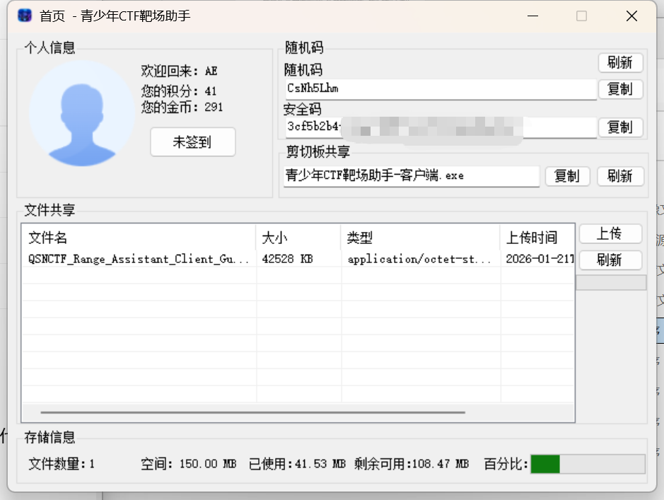 在客户端(自己电脑上)一般使用账号密码登录,在靶场中一般使用随机码和安全码进行登录。否则会出现冲突导致已登录的账号退出。