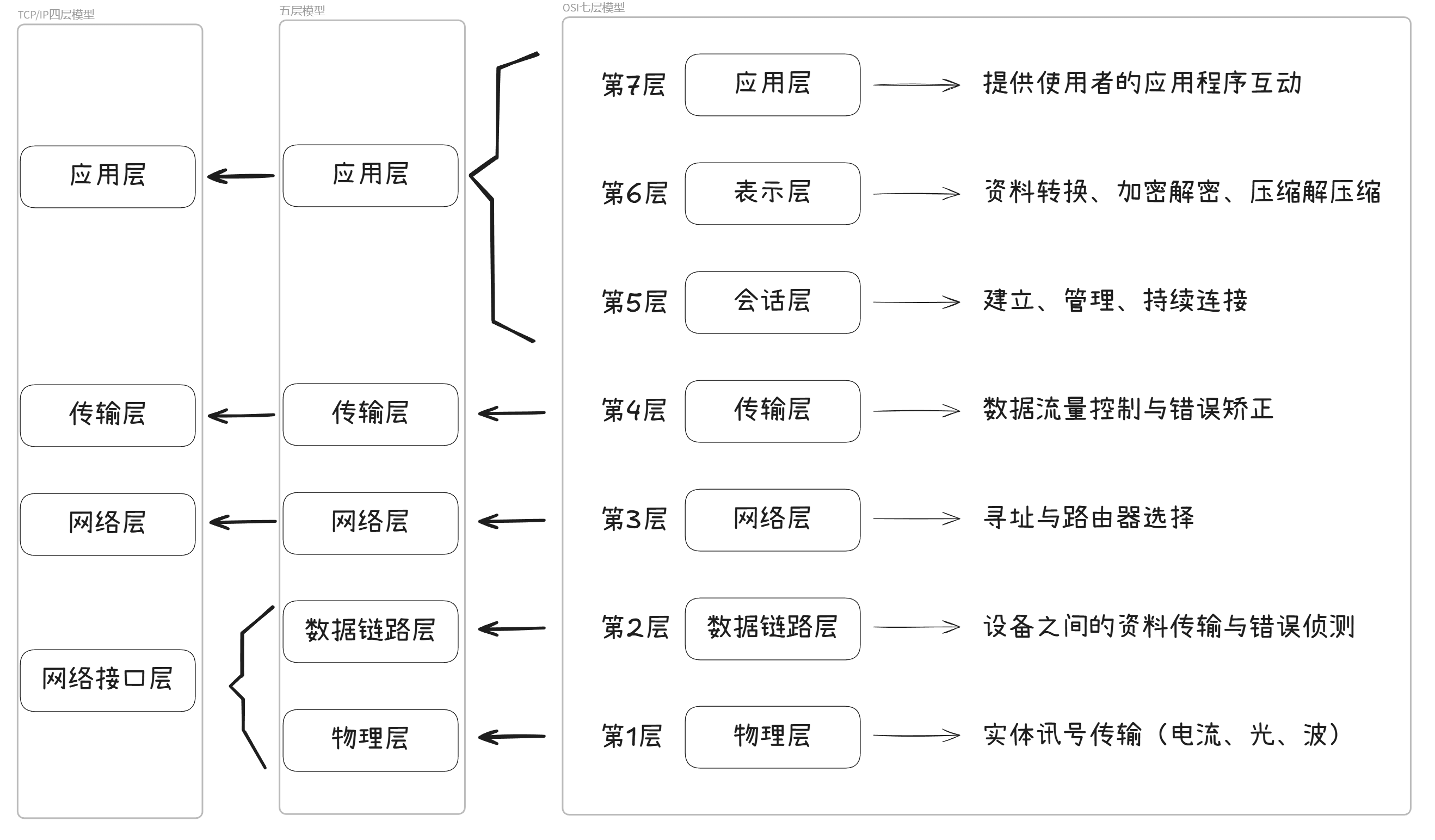 网络协议规定了数据在网络中传输的规则。主要模型有: